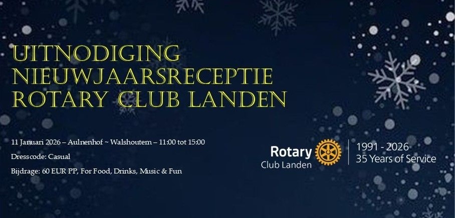 Het bestuur van Rotary Club Landen heeft het genoegen jullie uit te nodigen op hun jaarlijkse Nieuwjaarsreceptie op zondag 11 Januari 2026. Wij starten om 11u en het einde is voorzien om 15u.